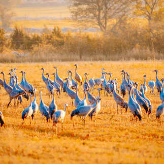 Über die Ölandbrücke ging es am Donnerstag für einen Tag vom schwedischen Festland auf die Insel Öland. Die Insel ist seit dem Jahr 1972 mit der auf dem Festland gelegene Stadt Kalmar durch die sechs Kilometer lange Brücke verbunden. Mit einer Länge von 137km und einer maximalen Breite von 16km, ist Öland die zweitgrößte Insel und zugleich die kleinste historische Provinz Schwedens. Als wir auf der Insel angekommen waren, fuhren wir entlang der Westseite in Richtung Norden. Hier kamen wir nach einigen Kilometern an die Schlossruine Borgholm, die kurz vor der eigentlichen Stadt lag. Nach einem Brand im 19. Jahrhundert ist die Sehenswürdigkeit als Ruine zu besichtigen. Das Bauwerk konnten wir nur von außen betrachten, da die Zugänge zur Ruine sowie das Besucherzentrum geschlossen waren. Wir fuhren weiter in die Stadtmitte von Borgholm und besuchten die kleine Einkaufsstraße die uns bis zum Hafen der Stadt führte. Da wir außerhalb der Hauptreisesaison hier waren, kam uns alles etwas leer und verlassen vor. Der Besucherandrang hatte in den letzten Wochen wohl nachgelassen, was nicht zu übersehen war. Da wir wegen der Natur ins Land gekommen waren, folgten wir anschließend wieder diesem Ziel und fuhren mit unserem Camper über die Insel um einen weiteren Eindruck von Öland zu bekommen. Hier war es schön und ländlich, die rot gestrichenen Schwedenhäuser und Bauernhöfe schmückten die Umgebung. Zudem prägten die für Öland bekannten Bockwindmühlen das Bild der Landschaft. Um diese Windmühlen genauer aus der Nähe betrachten zu können, fuhren wir zu den fünf Bockwindmühlen von Lerkaka, die sich hintereinander entlang der Straße auftürmten. Es war schön die Wahrzeichen von Öland in Ruhe aus der Nähe betrachten zu können. Was war denn hier am Himmel auf einmal los, stellte ich mir nach einem Blick in die Lüfte, die Frage?! Große Vogelschwärme zogen in der Umgebung von Lerkaka durch die Lüfte und waren durch das Geschnattere nicht zu überhören. Bei einem genaueren Blick konnte ich feststellen, dass es sich bei dem großen Fiedergetier um Kraniche handelte, die sich in Scharen auf den umliegenden Feldern tummelten und immer wieder zu einem Flug in den blauen Himmel abhebten. Genau das waren diese Momente, die ich in der freien Natur so liebte. Keine alltäglichen Tiere in ihrem freien Lebensraum zu beobachten, genau mein Ding! Wir fuhren von den Bockwindmühlen rund 500m weiter auf der Hauptsraße und bogen dann links auf einen schmalen Schotterweg ein. Der Weg führte uns direkt an den Sandstrand der Ostseeküste und an den von den Kranichen besiedelten Feldern vorbei. Am Ende des Weges kamen wir auf einen kleinen Parkplatz der umgeben von einem kleinen Wald im Schatten lag. Von hier aus kamen wir direkt zum feinsandigen Sandstrand der Ostsee. Die Sonne schien, der Himmel war blau und das Rauschen der See wirkte sehr entspannend. Es war traumhaft! Wir verweilten eine ganze Weile am Strand und machten uns am frühen Abend leider schon wieder auf die Weiterfahrt. Wieder vorbei an den Feldern der Kraniche legten wir nochmals einen kurzen Halt ein. Glücklicherweise hatte ich mein langes Teleobjektiv im Gepäck und nutzte die langsam untergehende Sonne für ein paar schöne Aufnahmen der Kraniche. Im Anschluss verließen wir die Insel und fuhren 60km in das Landesinnere nach Vissefjärda. Hier hatte ich zuvor einen schönen Campingplatz an einem großen See ausfindig gemacht, auf diesem wir die Nacht verbrachten.